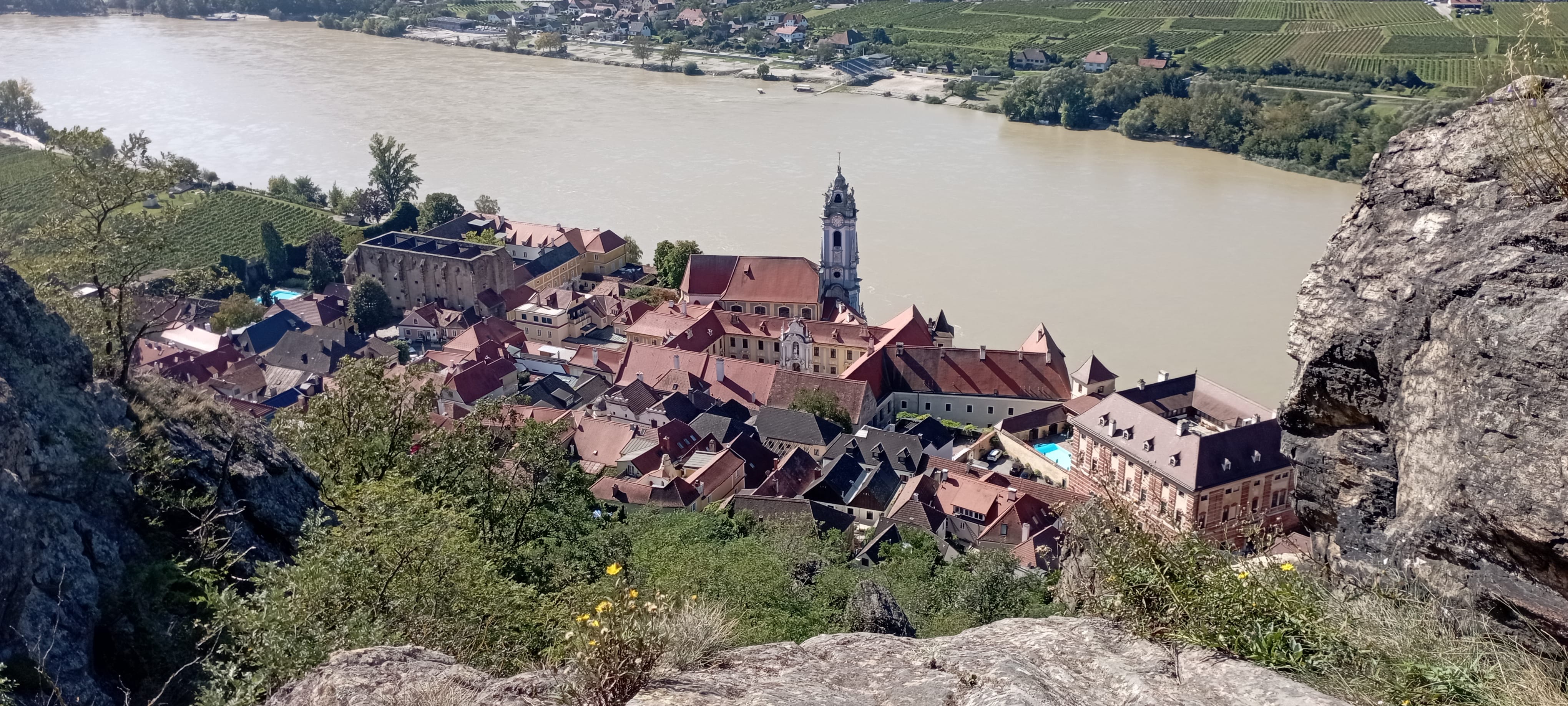 Continue along the Danube on a scenic road lined with vineyards and rock walls. Make a short stop at one of the wine terraces (e.g., in the village of Spitz or Weissenkirchen) to enjoy views of the Wachau from above.