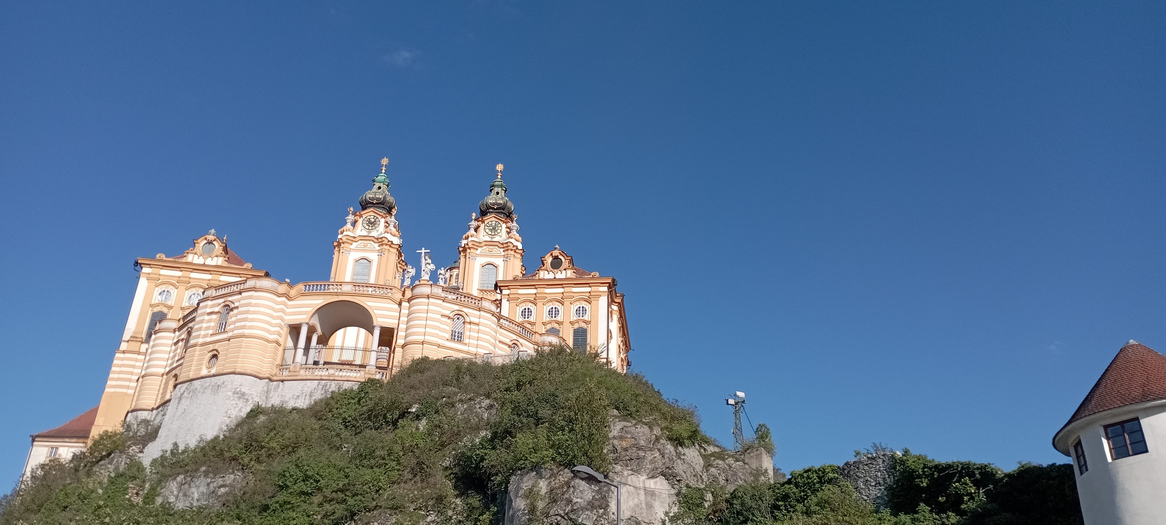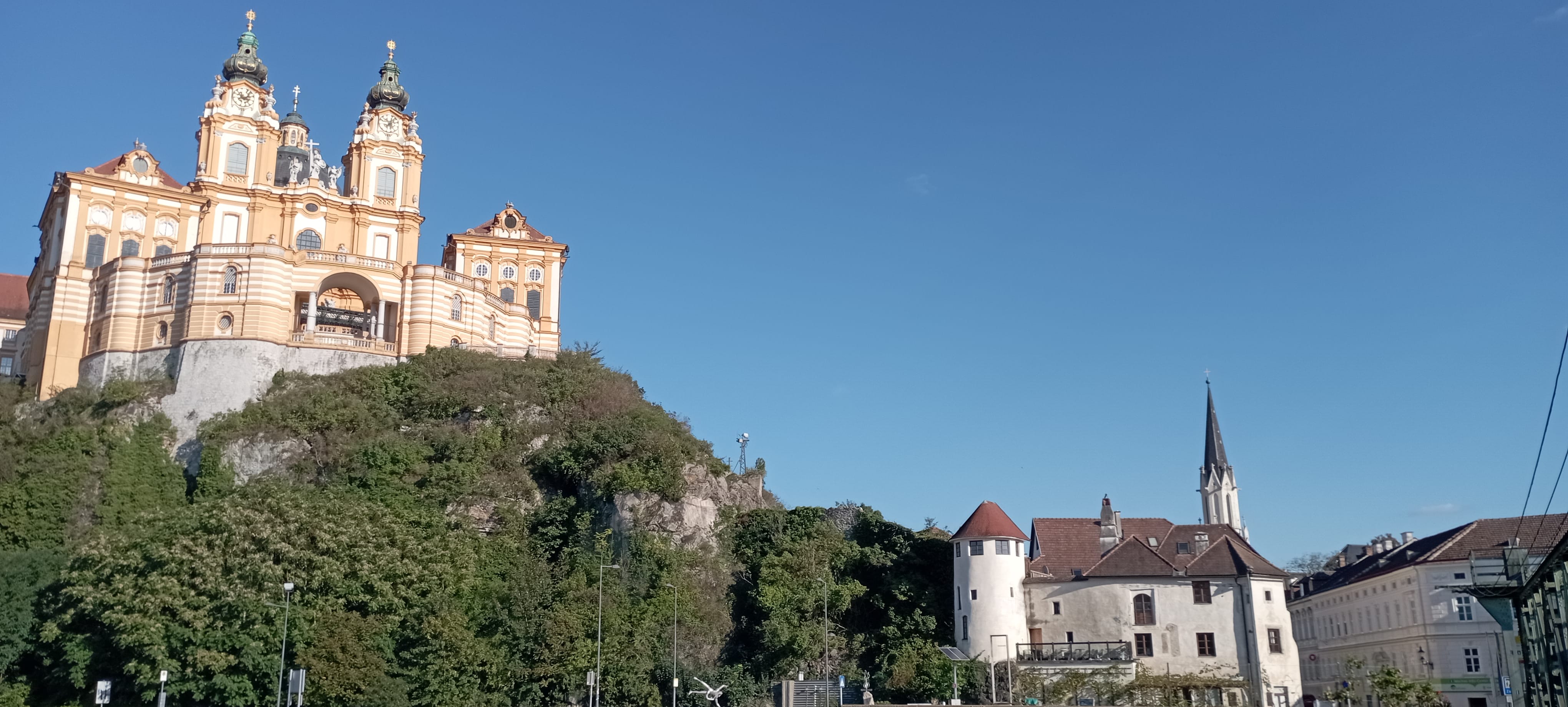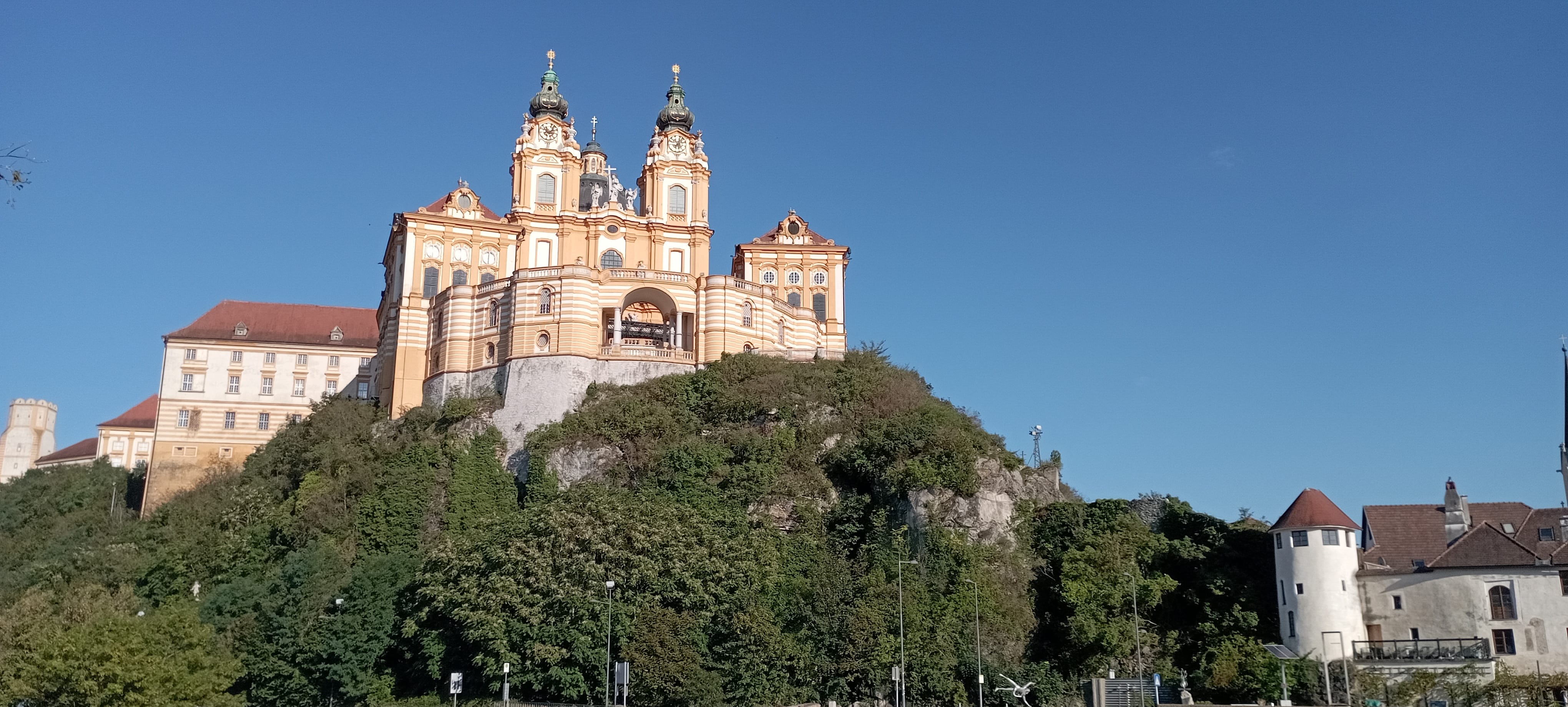 Conclude your trip in Melk, home to a monumental Benedictine monastery perched on a rocky outcrop above the Danube. From the monastery's terraces or the adjacent gardens, enjoy another view of the river and the entire region. A walk around the monastery is a sensory experience, with the scent of lavender, the sound of fountains, and the play of light on the golden domes.